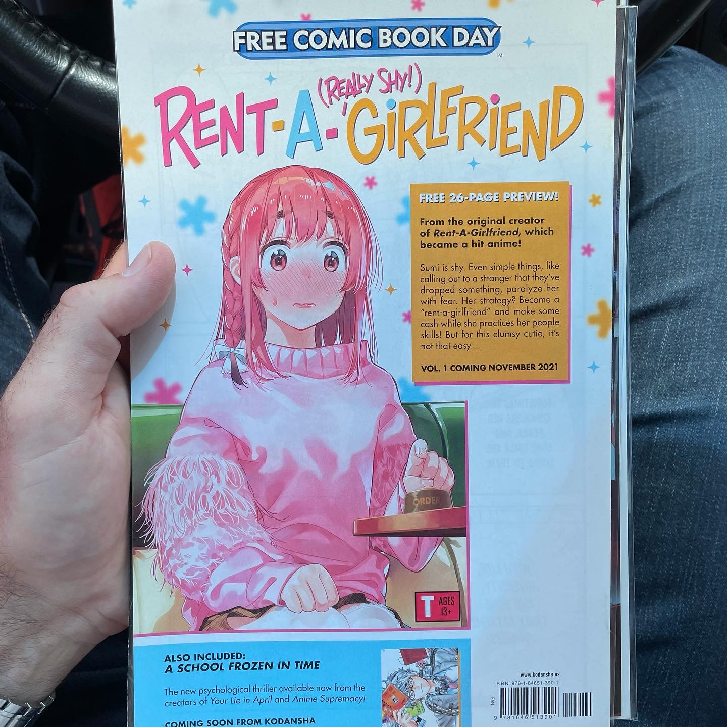 Rent-A-Girlfriend? Well, the title with the art made it hard to resist in its profound silliness, and I have been meaning to try any kind of manga, I mean actually buy some, for a while. I have a nephew who is into Tokyo Ghoul and such, and we trade perceptions of what we’ve been reading. The very orientation of the book–flipping and reading from what I would think of as the back, but in American comic book print format, helped me settle on this one; that same “regular” manager was about to tell me that I had to start from the back until he realized that I had already registered that.