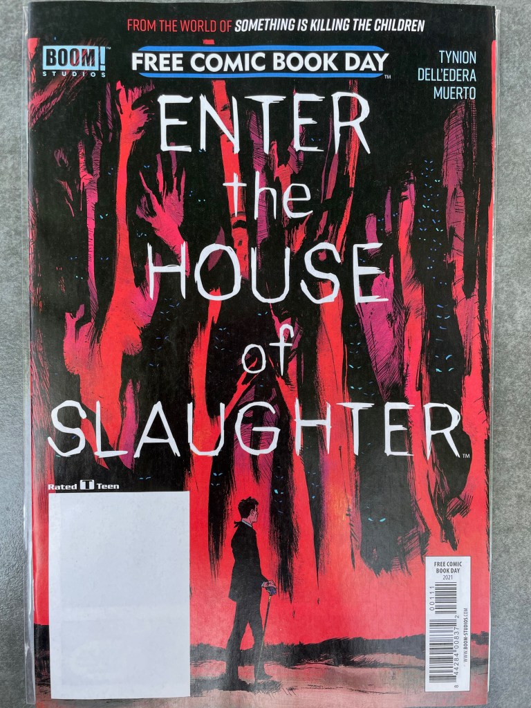 So, yes: Black Cotton (read this book!) and Captain Marvel (got on board with Kelly Thompson from her current Black Widow run; this is my second issue in this series). The free comics were tough. I like to go with titles I’ve never read, but maybe something I have heard something about or had my eye drawn to on the racks. The House of Slaughter I saw getting buzz on Instagram, and, well, I regret missing the Something Is Killing the Children train until it was too late and TPBs were my option, with too many other things to acquire for them to be a priority. Much like my side entrance into Black Hammer via Colonel Weird, which is not to say that they resemble in any Rick Springer’s side doors.