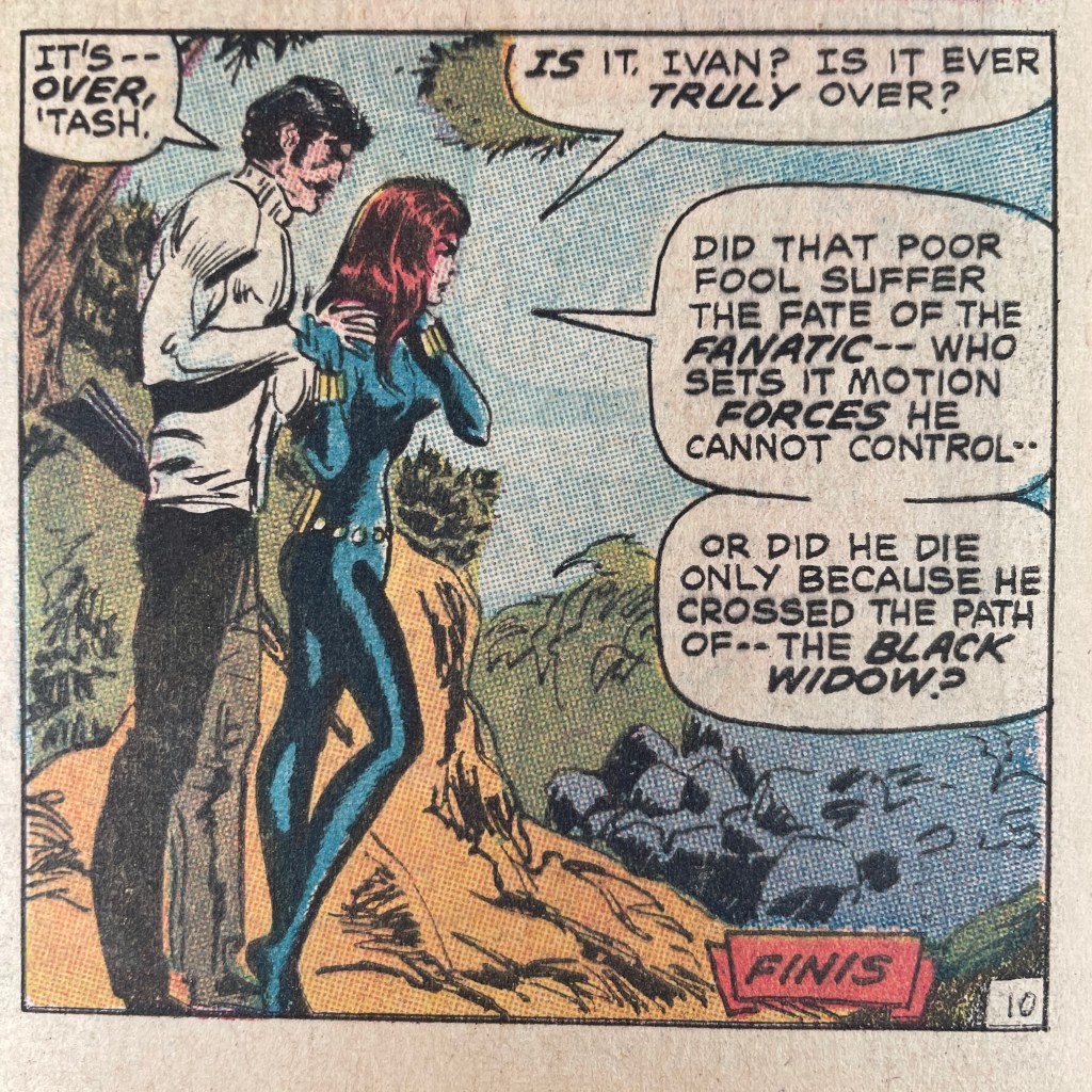 And as for Vampirella: I have never opened a copy of Vampirella. I come across the covers often; they are eye-catching, to be sure, and conveniently are displayed between the T’s and X’s, where sit a number of titles I like to check in on but rarely buy. (There’s another question of taste and interest to explore in a later post.) I think I have seen a page or two in some anthology or preview. I’m not even sure what she does or what kind of world she inhabits, other than the evident horror themes. The Alex Ross cover for the FCBD issue was one I just decided I couldn’t pass up. I love his rendering of the Black Widow’s first actual costume on an issue of Marvel, and decided that this companion cover of sorts was my way to finally answer my curiosity about Vampirella.