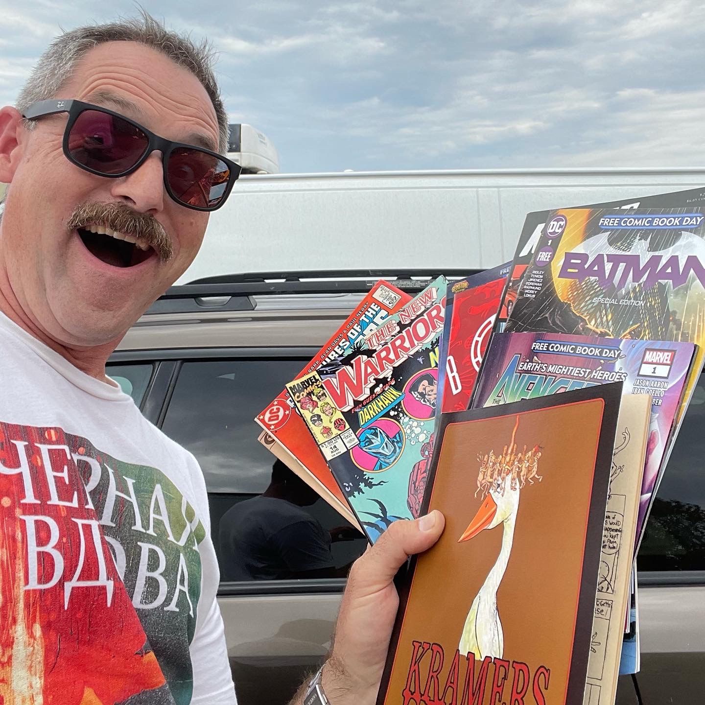 Displaced from the first Saturday in May, and erased in 2020 by the covid-19 pandemic, Free Comic Book Day this year is today, August 14! I decided to make a true day of it, recalling from past years that some comic book shops have strict limits on the number of free comics you can take home with you. Two years ago, my “home” shop, Comics-N-Stuff in Carlsbad, CA, instituted a hard and firm one-person-one-book rule. I pleaded with the clerk to let me choose two, since it was also my birthday, and he relented! Perhaps modest, but I decided to visit at least three stores in a few hours on a late-summer Saturday in San Diego, if for anything else to make up for the lost year–and the many, many lost years of Free Comic Book Day that I have endured, realized only too late (2013).